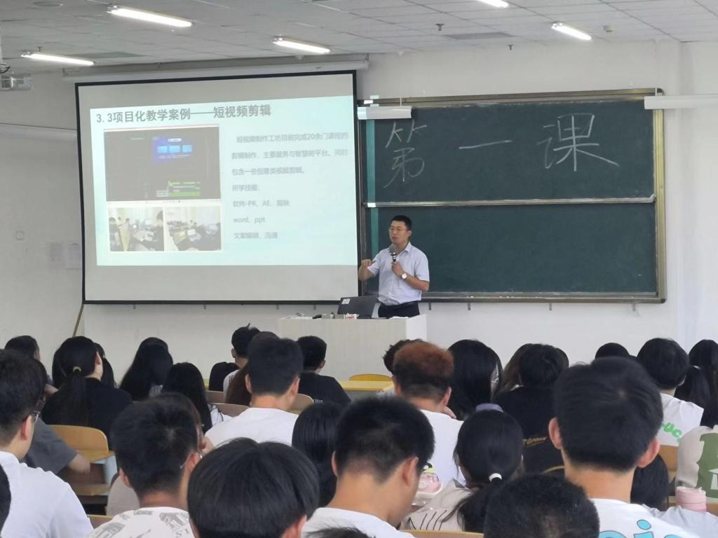 学院韩超老师从电商学院各专业人才培养角度对学院现在的教学模式,产业学院培养模式、项目工作室建设等分类做介绍,各专业负责人对专业基本情况、技能大赛获奖情况、优秀毕业生情况作了详细介绍,学生明确了在校期间专业发展方向和个人努力方向。辅导员老师就学生在校期间的学习生活、 党团班级建设、学风建设等进行介绍,学生的第一课堂介绍与第二课堂有机融合,学生素质规范从本次新生入学教育开始逐步提升。
