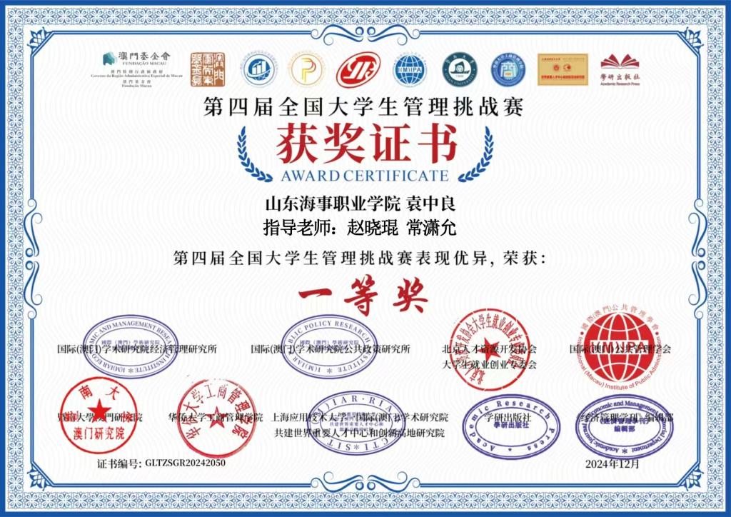 电商学院袁中良在本次大赛中表现卓越,大放异彩。在指导教师赵晓琨的悉心指导下,他凭借扎实深厚的专业知识以及敏锐的问题解决能力,在众多参赛队伍中脱颖而出,成功斩获个人赛一等奖的殊荣。比赛过程中,各参赛队激烈交锋,充分展现出当代大学生的智慧与活力,而袁中良更是凭借自身优势,一路过关斩将,赢得评委的高度认可。
