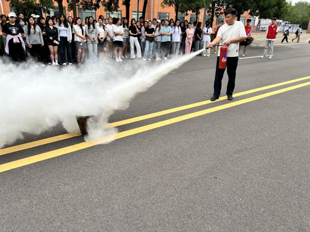 随后,安全管理处老师为同学们详细讲解了常见消防器材的使用方法。针对灭火器,从“提、拔、握、压”四步操作要领入手,结合实物演示,让大家清晰了解如何在火灾初期快速、准确地使用灭火器扑灭明火;对于消防栓的连接、展开水带及喷水技巧,确保每位师生都能掌握关键要点,同学们踊跃参与实操练习。