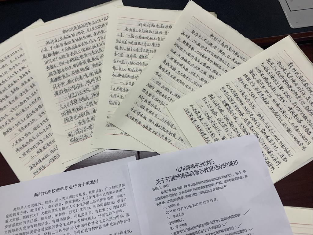5.《山东海事职业学院建立健全师德建设长效机制实施办法》;