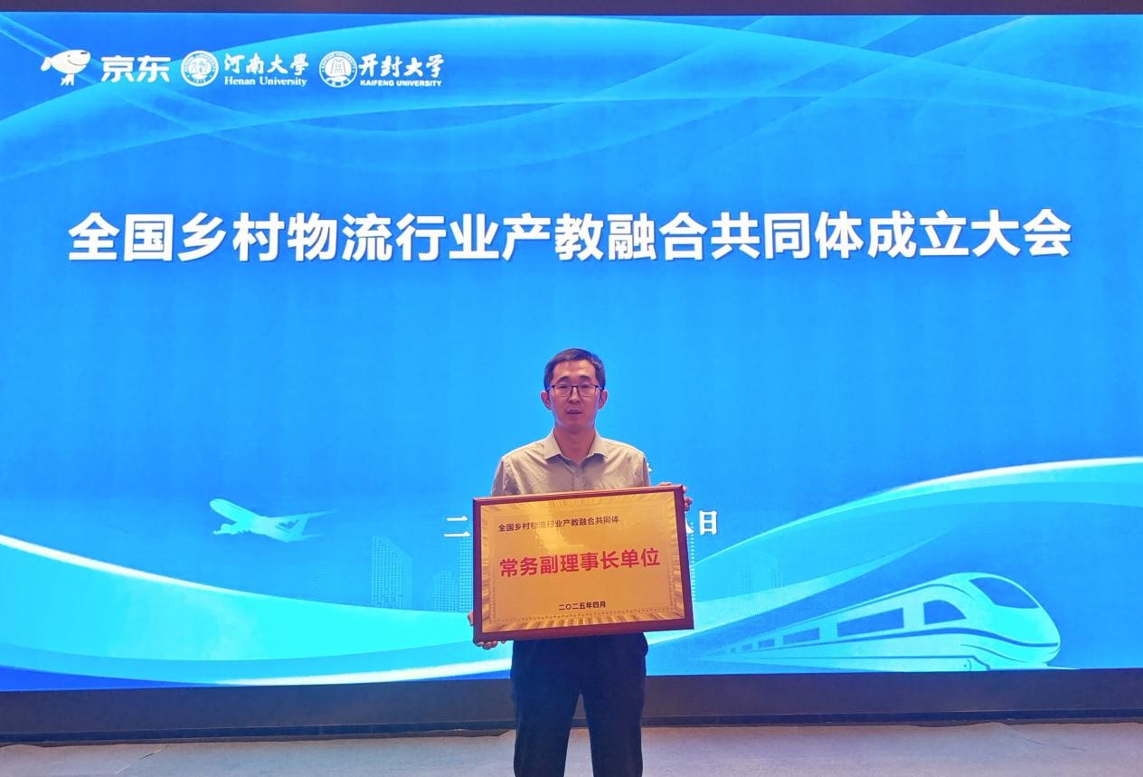 4月17日至18日,全国乡村物流行业产教融合共同体成立大会暨乡村物流高端论坛于开封大学召开,河南大学、开封大学、京东集团等160家高校、企业参会,学校获聘常务副理事长单位,电商学院代表学校参加本次会议。