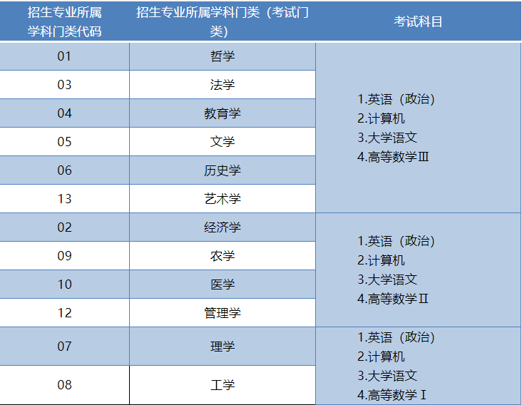 考试门类依据教育部公布的《普通高等学校本科专业目录(2012年)》划分。