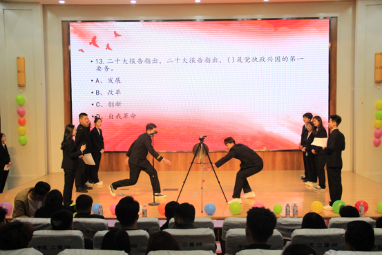 本次竞赛活动学校九个二级学院各派出一支代表队参赛,竞赛分为1V1对抗赛、小组计时赛,设有个人必答题、集体必答题、抢答题三个环节,题目围绕党的二十大重要内容、新党章等相关内容开展,全面考察了参赛选手的理论知识和学习成果。