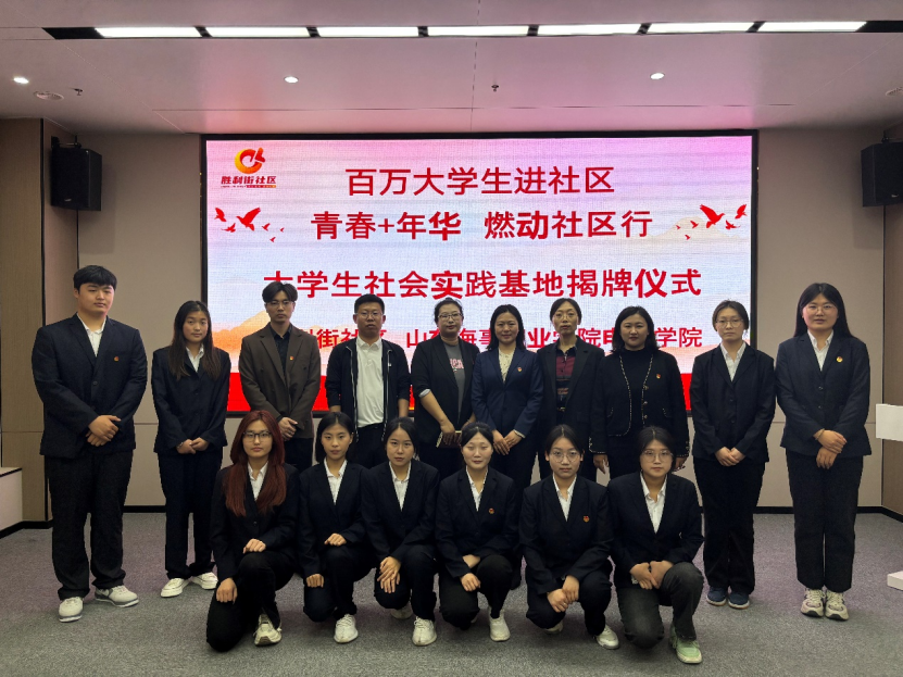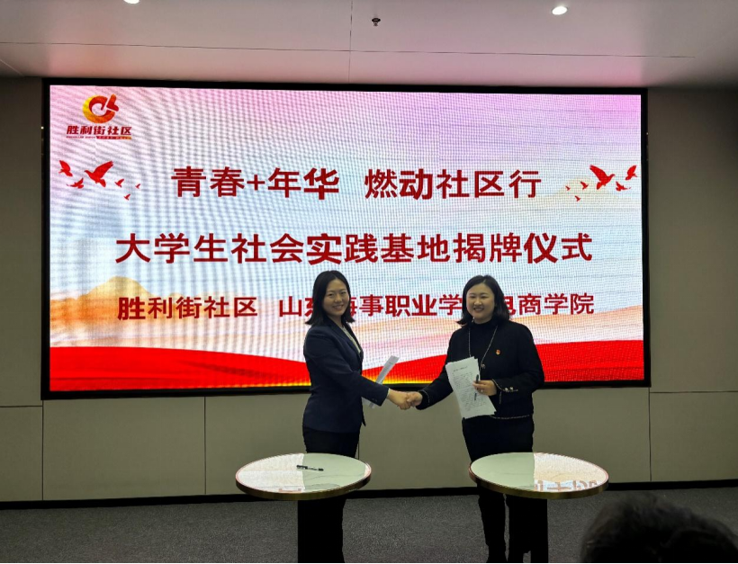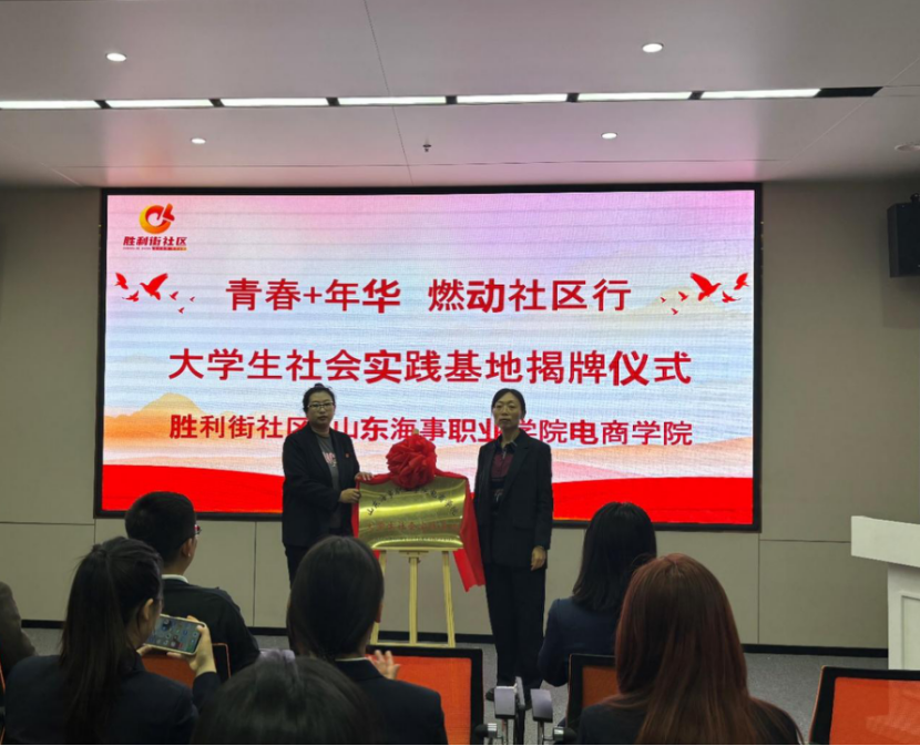 为响应团中央大学生社区实践计划和“百万学生进社区”社会实践工作安排,切实提升基层共青团实践育人质量,让学生们在实践课堂中受教育、长才干、做贡献。4月23日,电商学院在潍坊市奎文区东关街道胜利街区委员会顺利举行“青春+年华 燃动社区行”大学生社会实践基地签约揭牌仪式。东关街道党工委组织委员徐浩,东关街道党工委宣传统战委员、团工委书记芦鑫,街道社会事务办副主任宋驰,胜利街社区党委书记、居委会主任王瑛,山东海事职业学院团委书记刁宁,电商学院党支部副书记常潇允及师生代表参加此次仪式。
