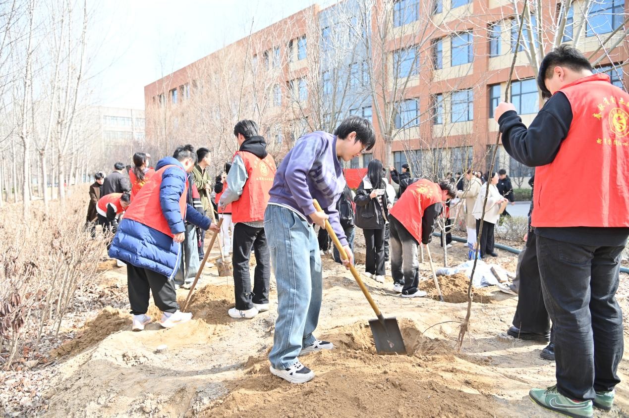 春回大地,万象更新。为践行生态文明理念,共建绿色校园,3月12日,电商学院在4号教学楼后西空地组织开展“同心涵育绿色希望,同行守护生态文明”义务植树活动。学院院长孟祥云教授、副书记郭海洋率班子成员、学院全体教职工、50余名学生共同参与,为校园增添新绿,播种希望。