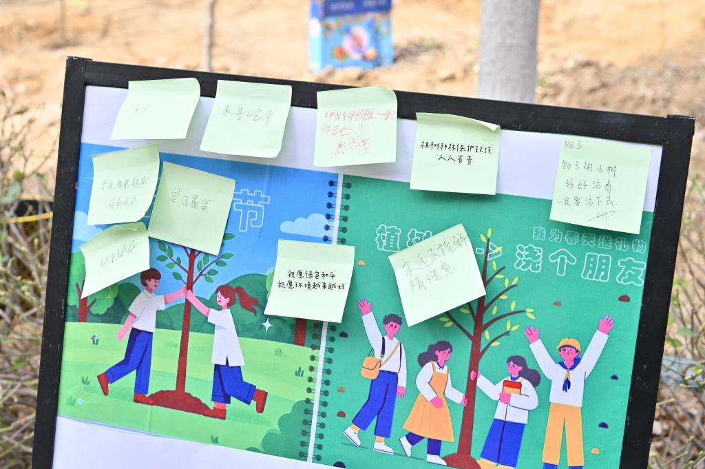 下午14:00植树现场一片热火朝天的景象。教职工与学生分工协作,挥锹铲土、扶苗填坑、培土浇水,合力种下50棵果树。学生们结合专业制作了心愿树海报以及环保创意牌。后续电商学院还将陆续补种和增种树苗并结合专业力量做好栽种树木的养护,确保“栽一棵、活一棵,绿一片、美一片”。