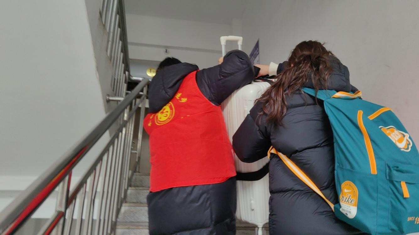 返校当日,志愿者们准时到岗,以饱满的热情和昂扬的姿态迎接同学们的归来。校门口,志愿者们主动接过同学们手中沉重的行李,一趟又一趟地往返于校门和宿舍之间,尽管天气寒冷,但他们的心却始终炽热滚烫。志愿者们用真诚的笑容和无私的付出,温暖着每一位返校同学的心,让这个乍暖还寒的开学季充满了融融暖意,让初回校园的同学们感受到了家的温暖。