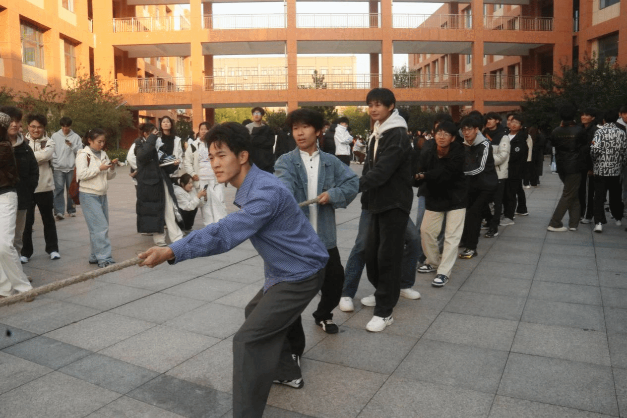 比赛前期,电商学院学生会精心策划赛程,明确比赛规则与安全须知,提前准备好比赛用绳、计时设备及医疗应急物资,确保赛事有序推进。各班级以“友谊第一,比赛第二”为宗旨,利用课余时间积极备战,从握绳姿势到发力节奏,从人员站位到口号配合,都进行了反复磨合,充分展现了新生们的集体荣誉感与执行力。